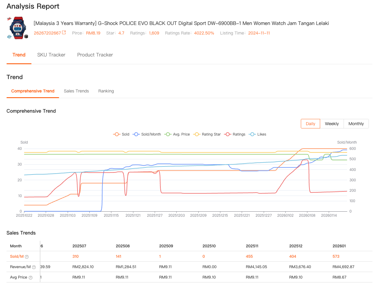 With SKU Insight, I can see how different SKUs within the same product perform over time. This matters more than it sounds. I’ve seen competitors raise prices overall while quietly phasing out weak SKUs—and their sales didn’t drop at all.