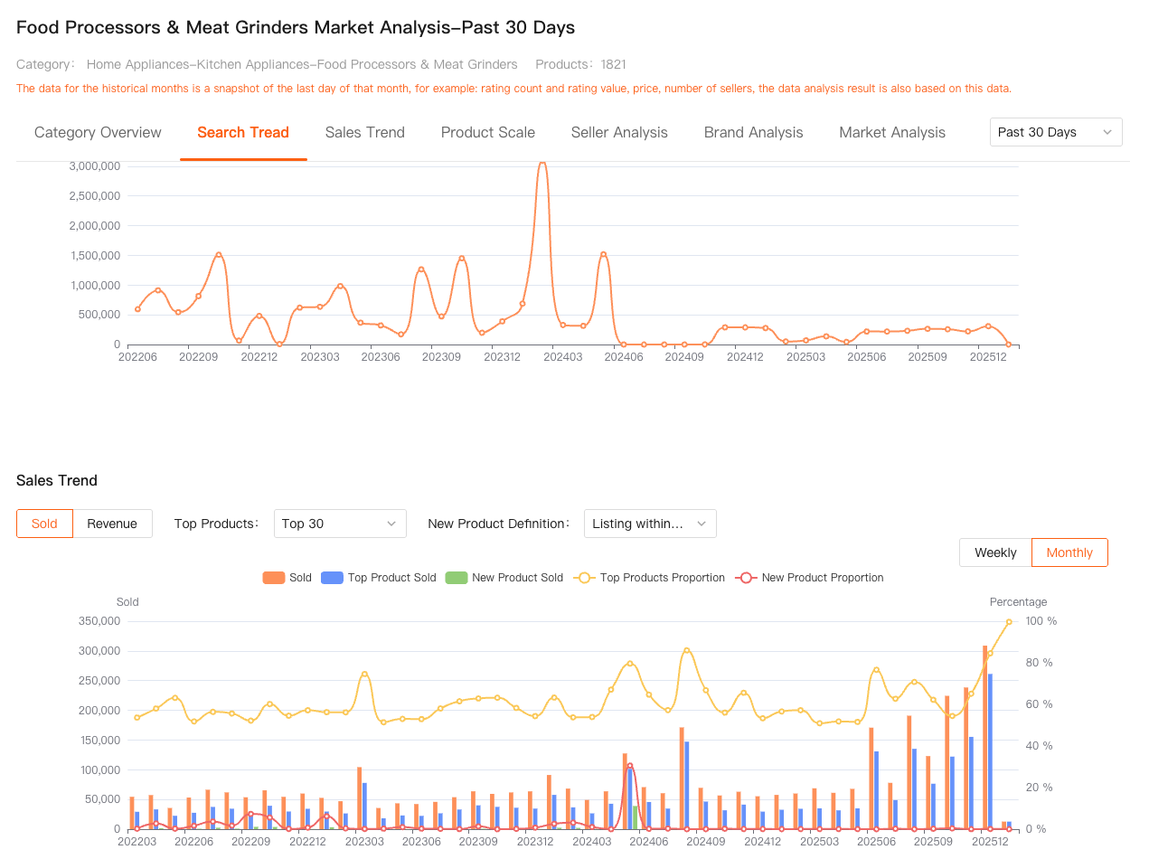 Market Analysis helps me understand the overall price range, how concentrated sales are among top products, and whether the category is trending toward premium positioning or price competition. This matters because price pressure often comes from market structure, not just individual competitors.