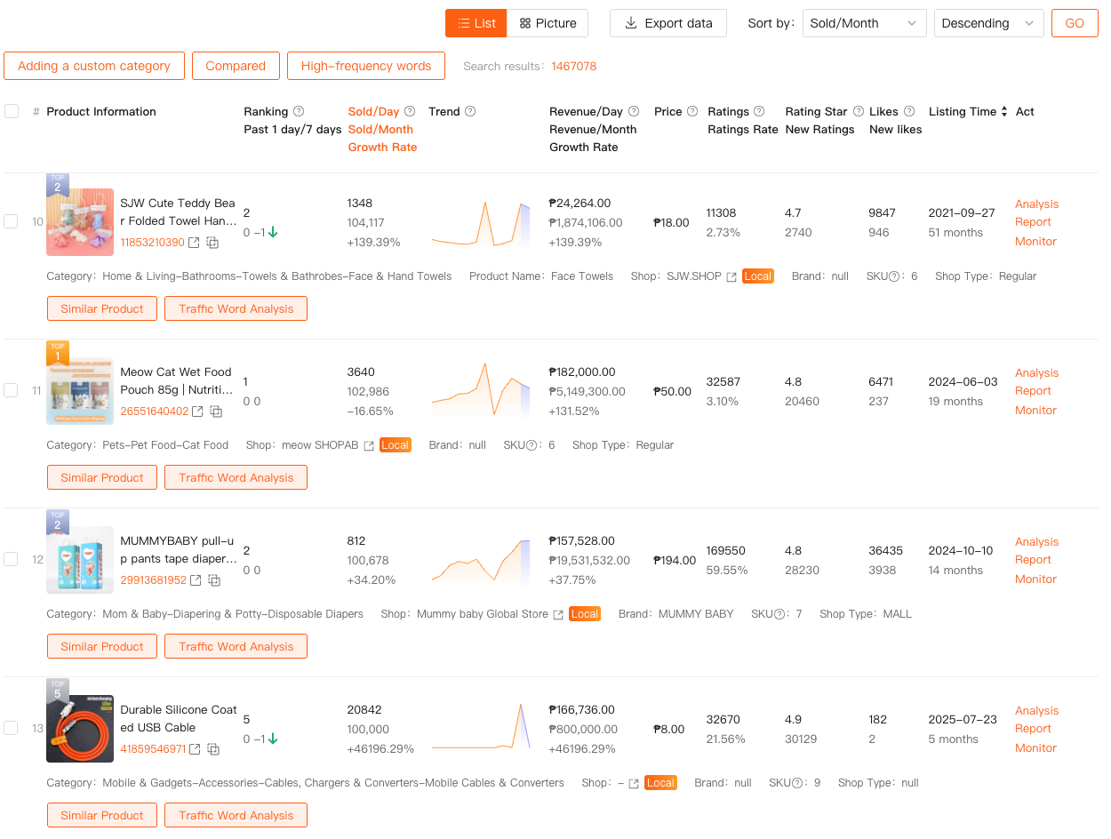 Using Shopdora’s Comprehensive Analysis, I could finally see sales trends, revenue changes, rankings, and product lifecycle signals across the market. This wasn’t theory. It was concrete data, updated regularly.