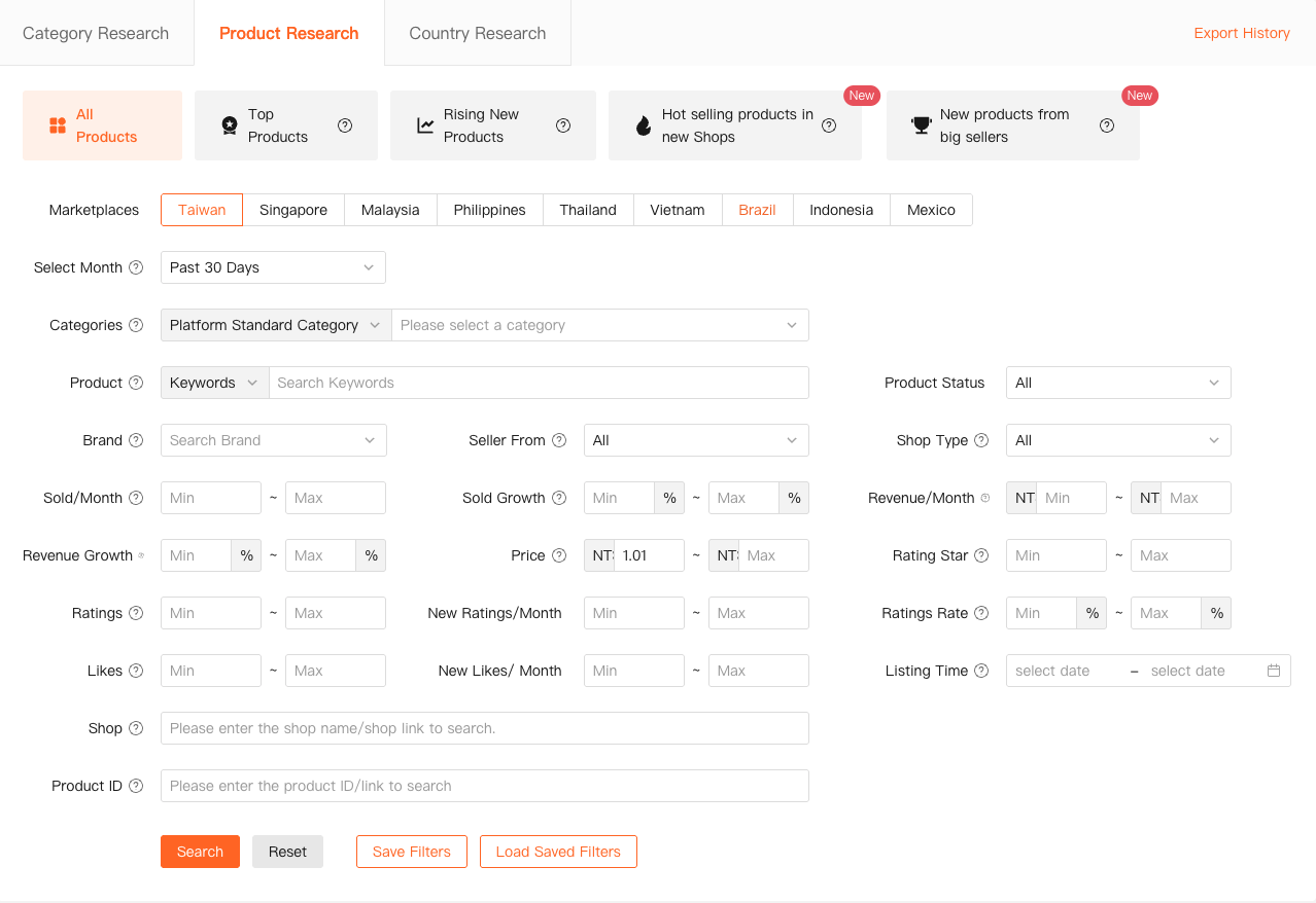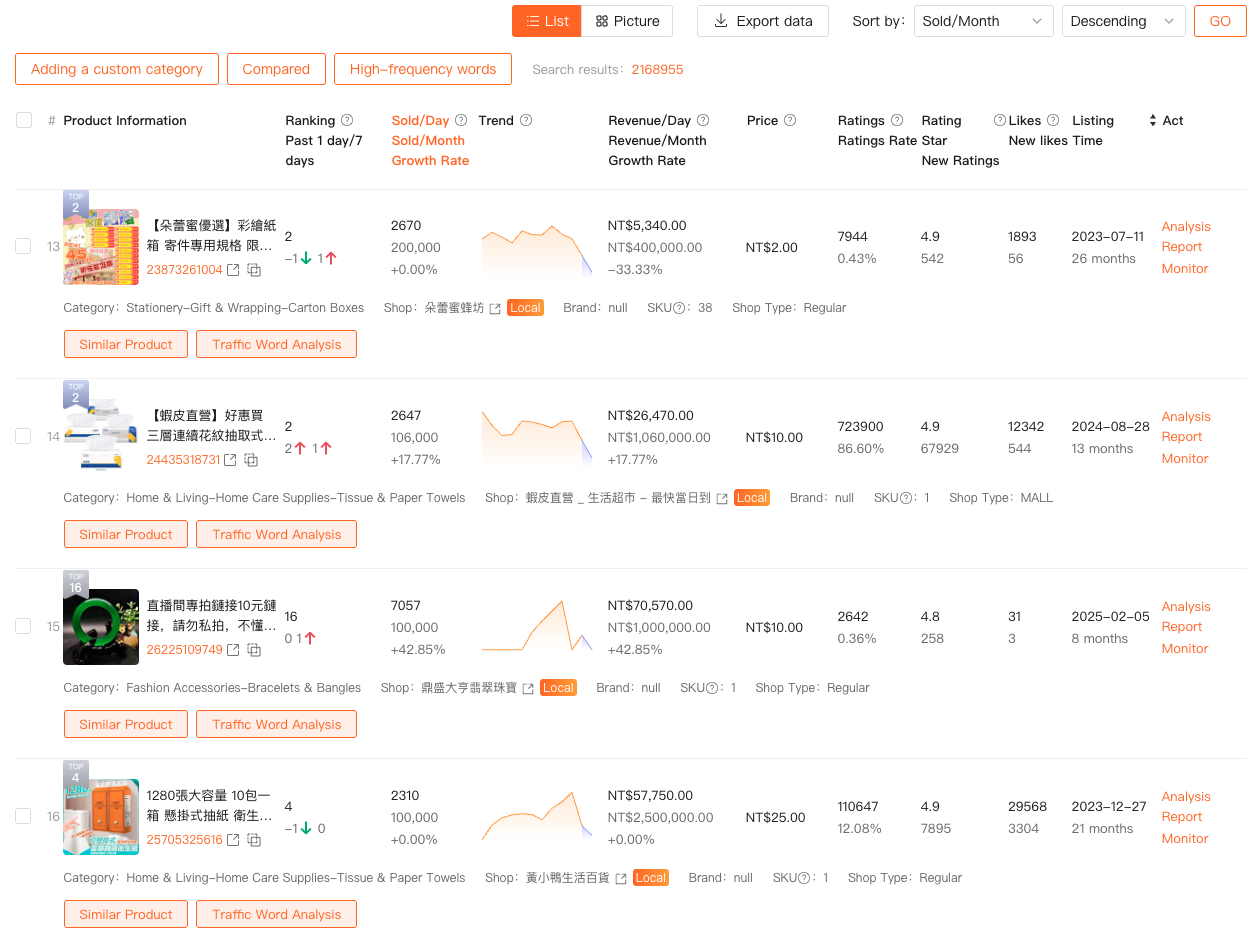 If you’re not confident about analyzing data manually, try using a Shopee research tool like Shopdora — it updates daily with the latest Shopee front-end product data, and its filters let you easily identify trending items and potential bestsellers.
