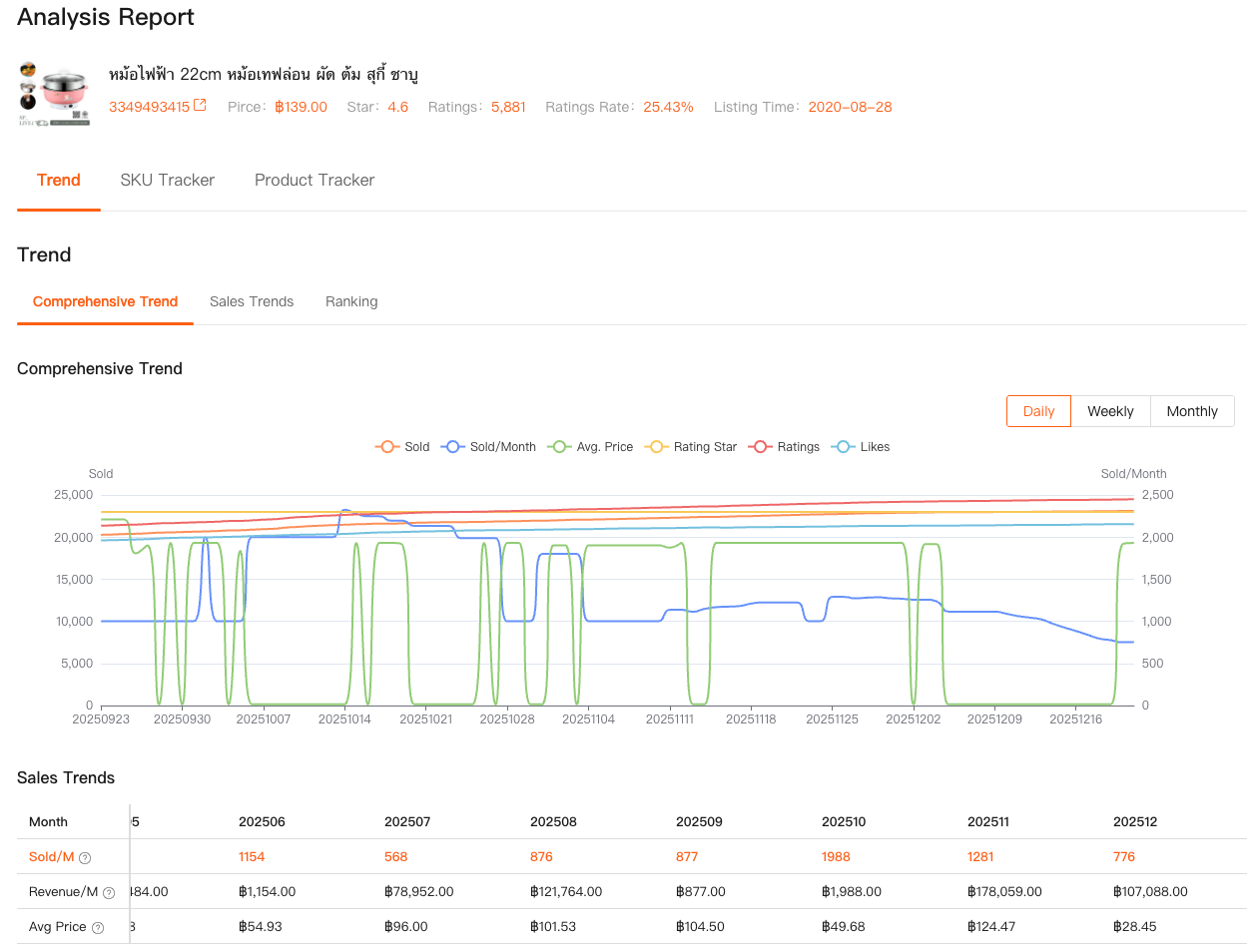 - Validate Before You Source: Before you order 500 units from a supplier, run a Comprehensive Analysis on the top 3 competitors in that niche. Is the "Sold Growth" line trending up or down over the last 90 days? If the trend is dying, don't buy the stock.