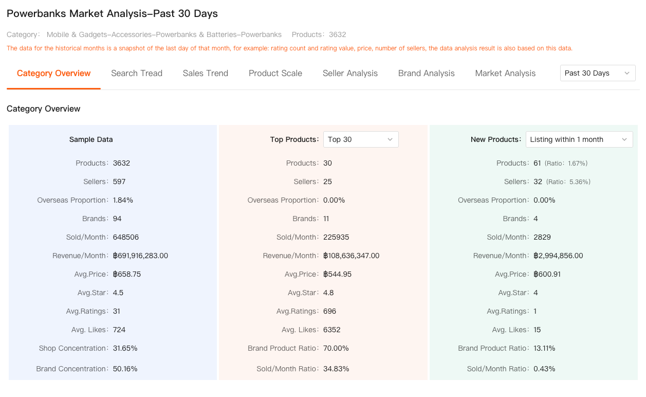 What you can’t see natively is what every serious seller actually needs before making decisions: how big the category really is, how concentrated the competition is, whether sales are dominated by a few top products, how many new products are entering, and whether demand is trending up or quietly cooling off.