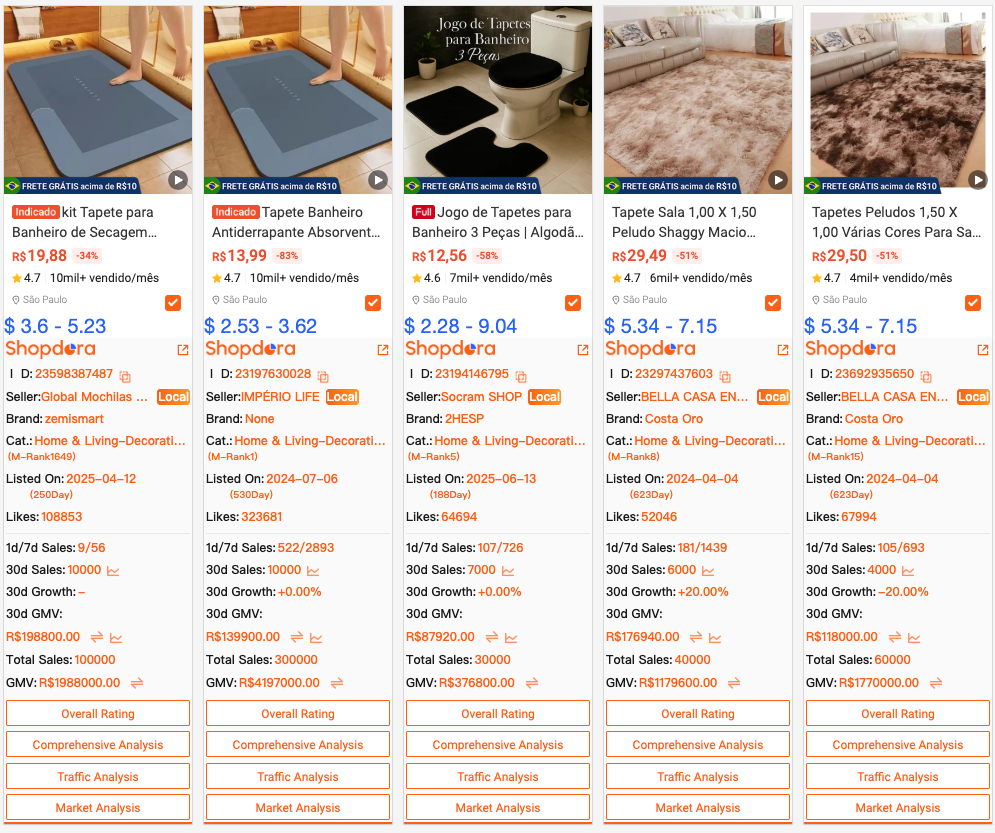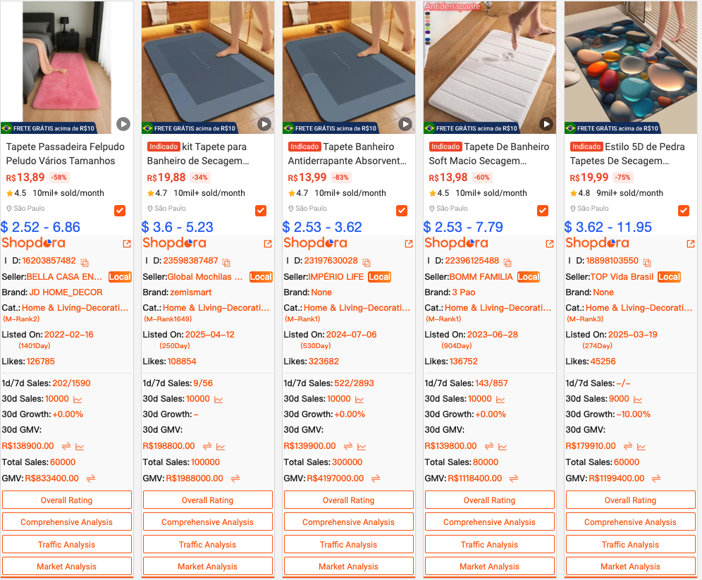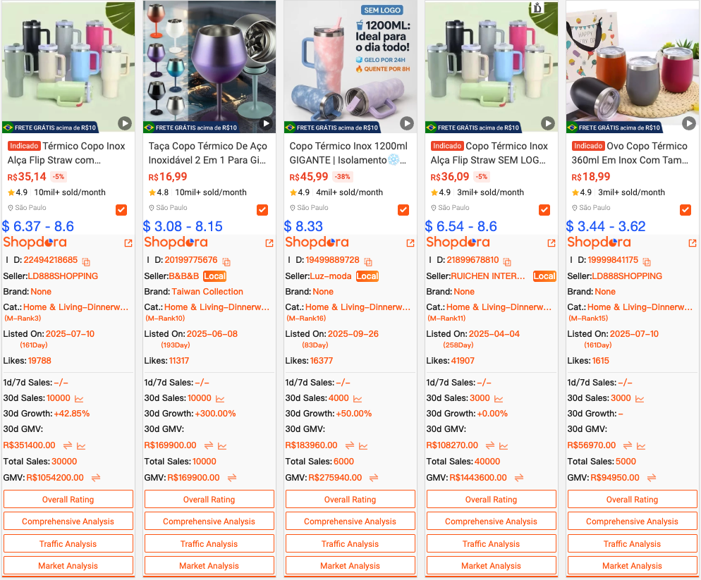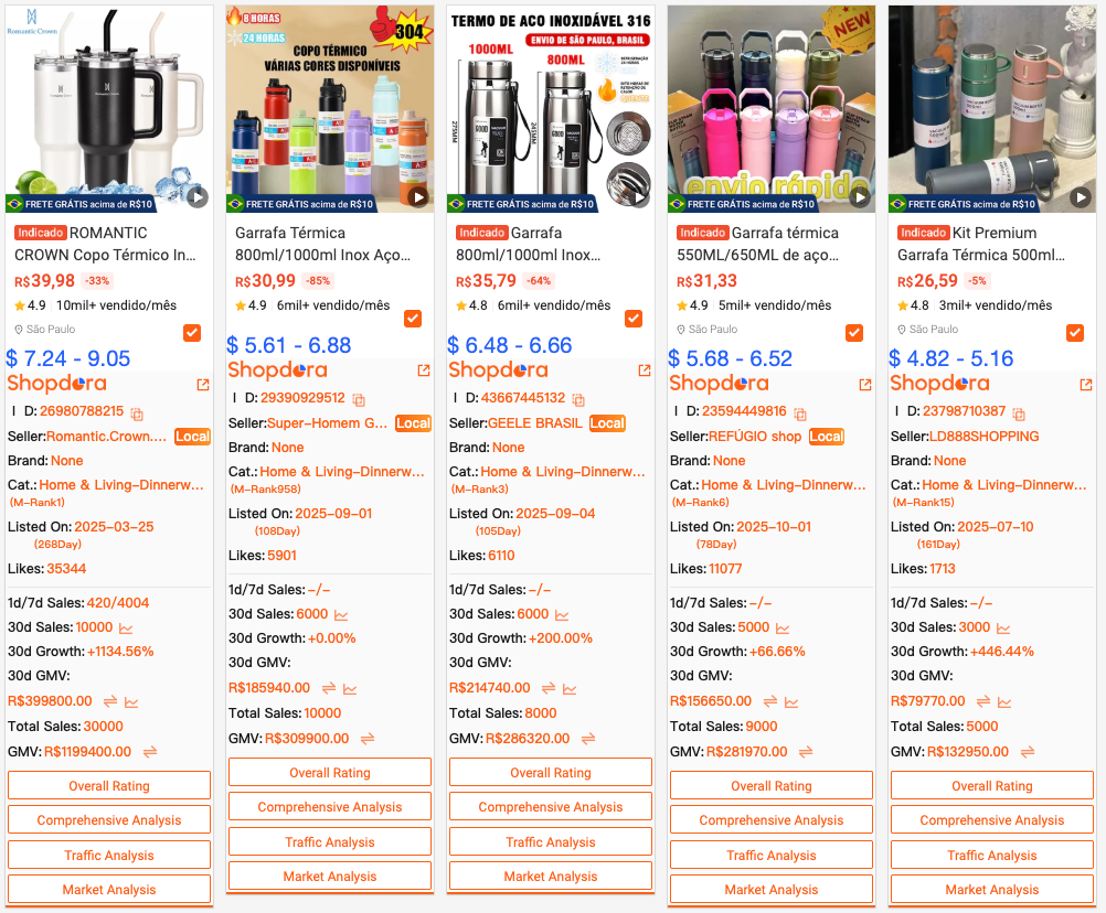 This week’s trends show strong and consistent demand across home essentials, organization products, drinkware, and household décor, reflecting Brazil’s year-end home refresh and holiday lifestyle needs.