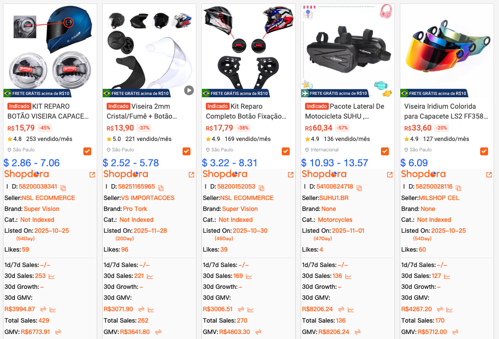 Helmet remains a steady keyword, reflecting Brazil’s large population of motorcycle commuters.