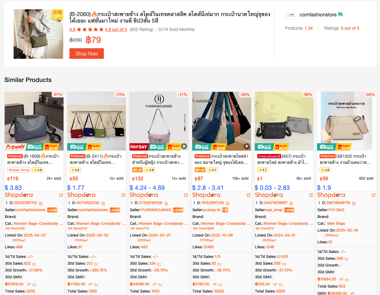 The problem is that Shopee’s front-end only shows surface-level signals: price, sales count, reviews.