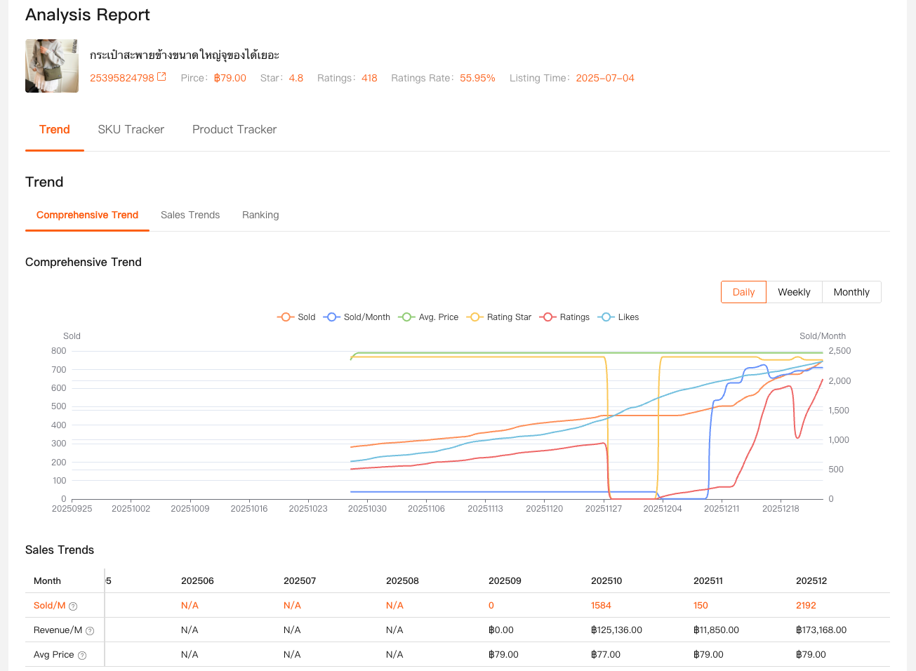 - Their prices, sales, reviews, and listing age