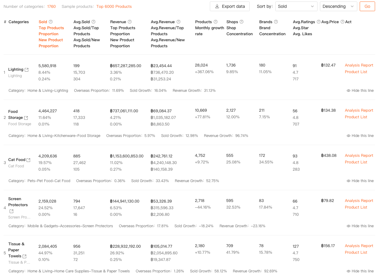 Once I had a clear category direction, I still needed to understand how individual products behaved inside that market. This is where Comprehensive Analysis came in.