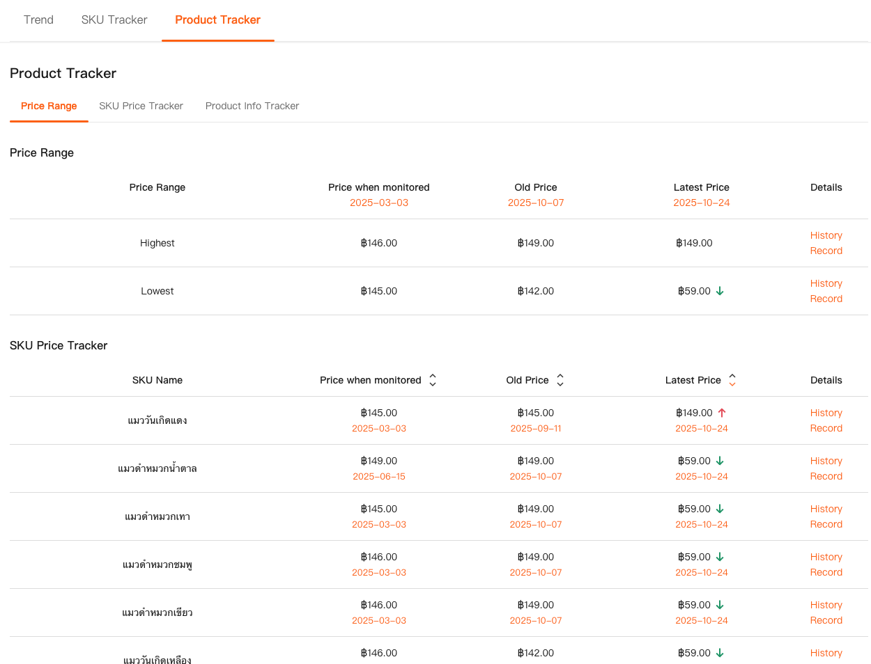 With Shopdora’s Comprehensive Analysis and Product Tracker, I can monitor: