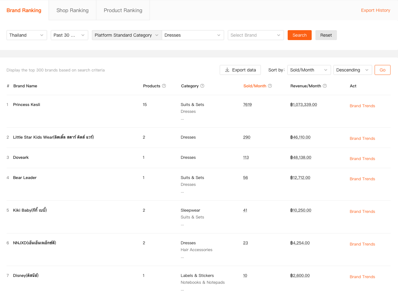 Brands benefit from accumulated sales, stronger conversion signals, and user trust. Competing against them requires either a clear gap or a clear trend shift. Without brand-level Shopee data, you’re guessing.