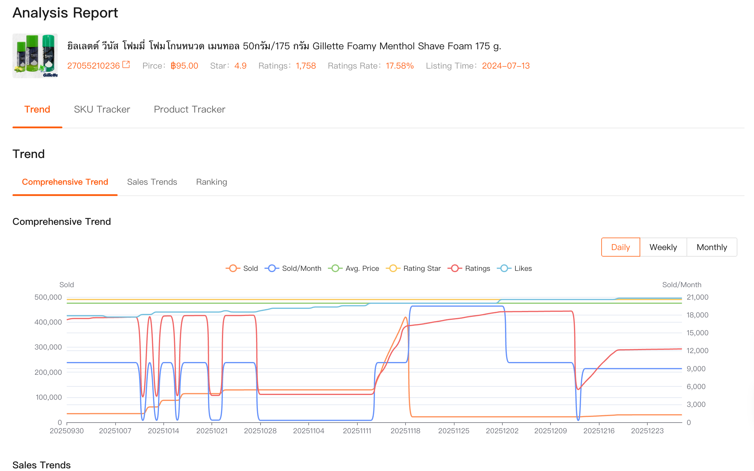 By combining sales trends, revenue changes, price history, ranking movements, and product tracking into one view, I can see how a product or category evolves over time. I can tell whether a ranking jump is sustained or temporary, whether price drops are isolated or part of a broader pattern, and whether a competitor is scaling aggressively or slowly pulling back.