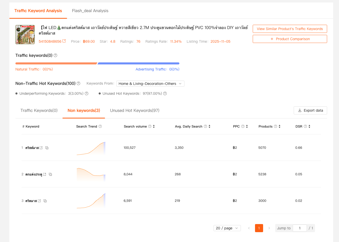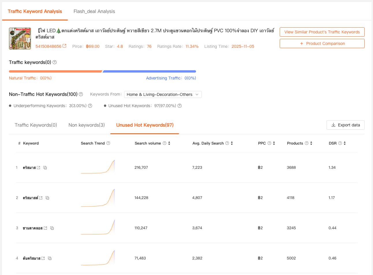 From the product page, sellers can enter Comprehensive Analysis to view: