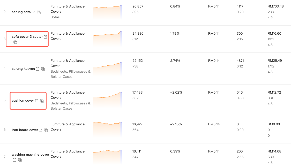 Instead of broad terms like “cushion cover”, you might find “sofa cover 3 seater”  — witch have strong search demand with fewer competitors.