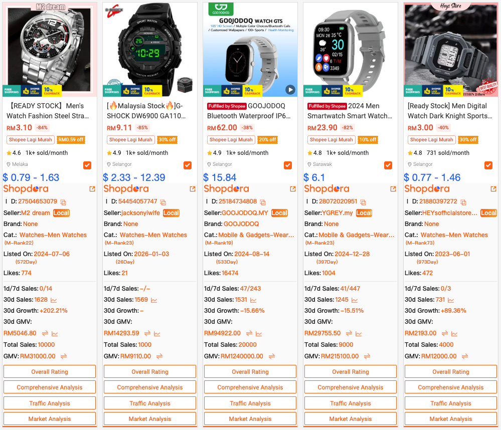 Women’s traditional wear, footwear, watches, and storage-related products continue to generate stable interest, while early demand for Hari Raya–related fashion is beginning to emerge in search trends.