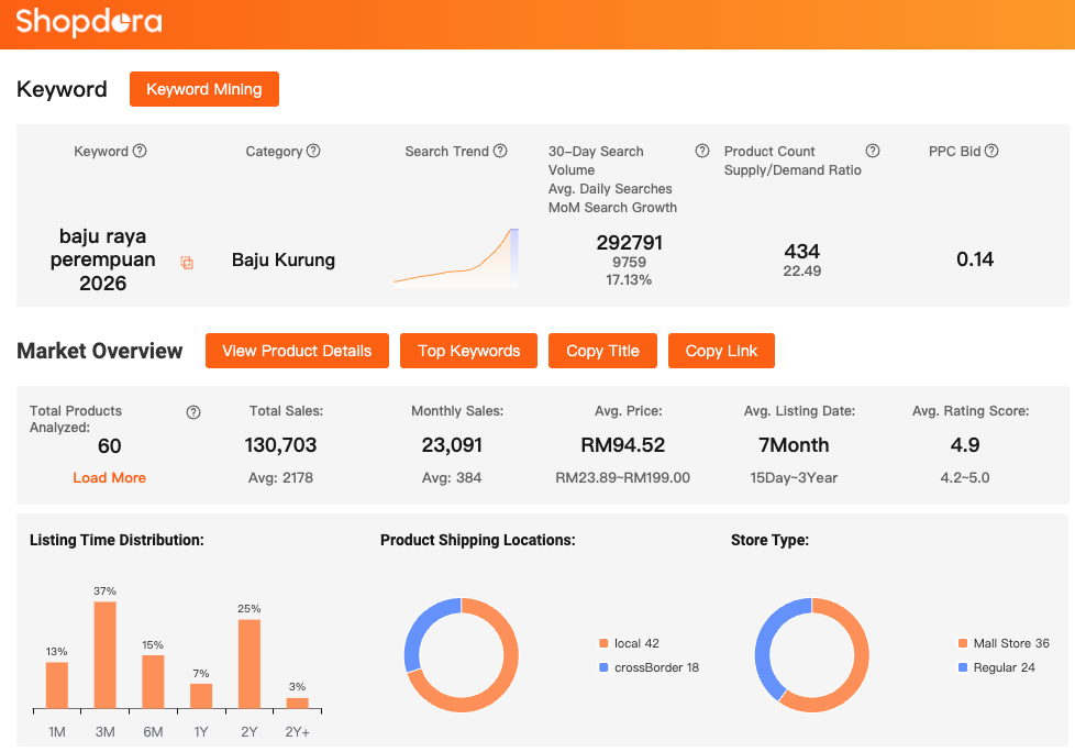 Search interest in baju kurung and baju raya perempuan 2026 suggests that shoppers are beginning to prepare for upcoming festive seasons well in advance.