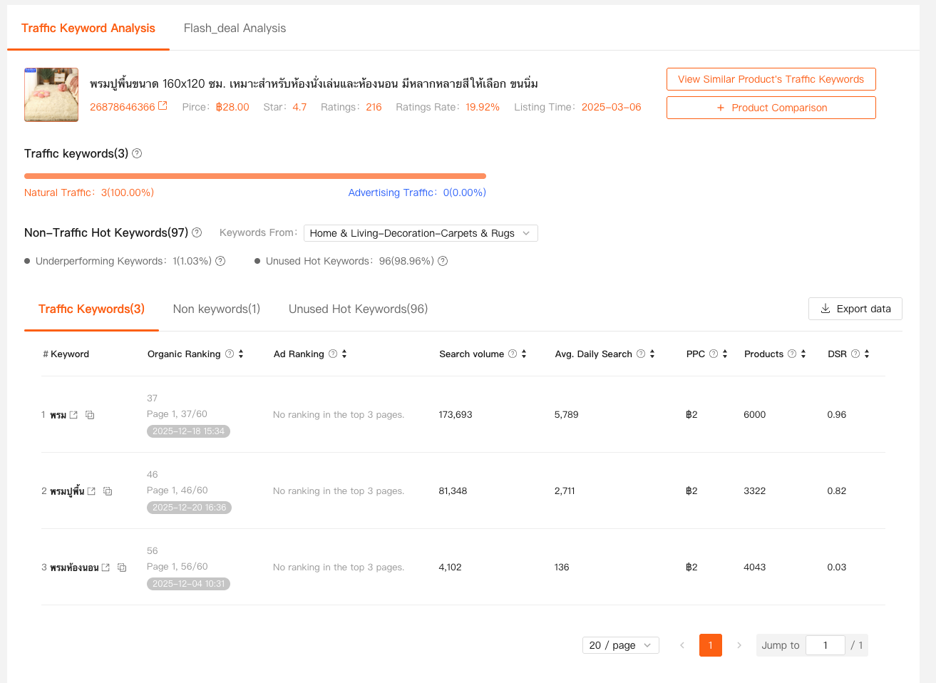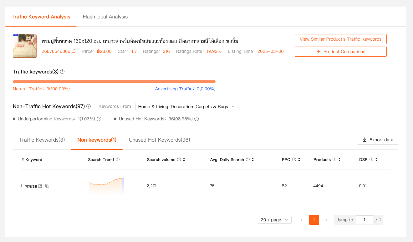 Directly on the Shopee product page, Traffic Analysis shows you: