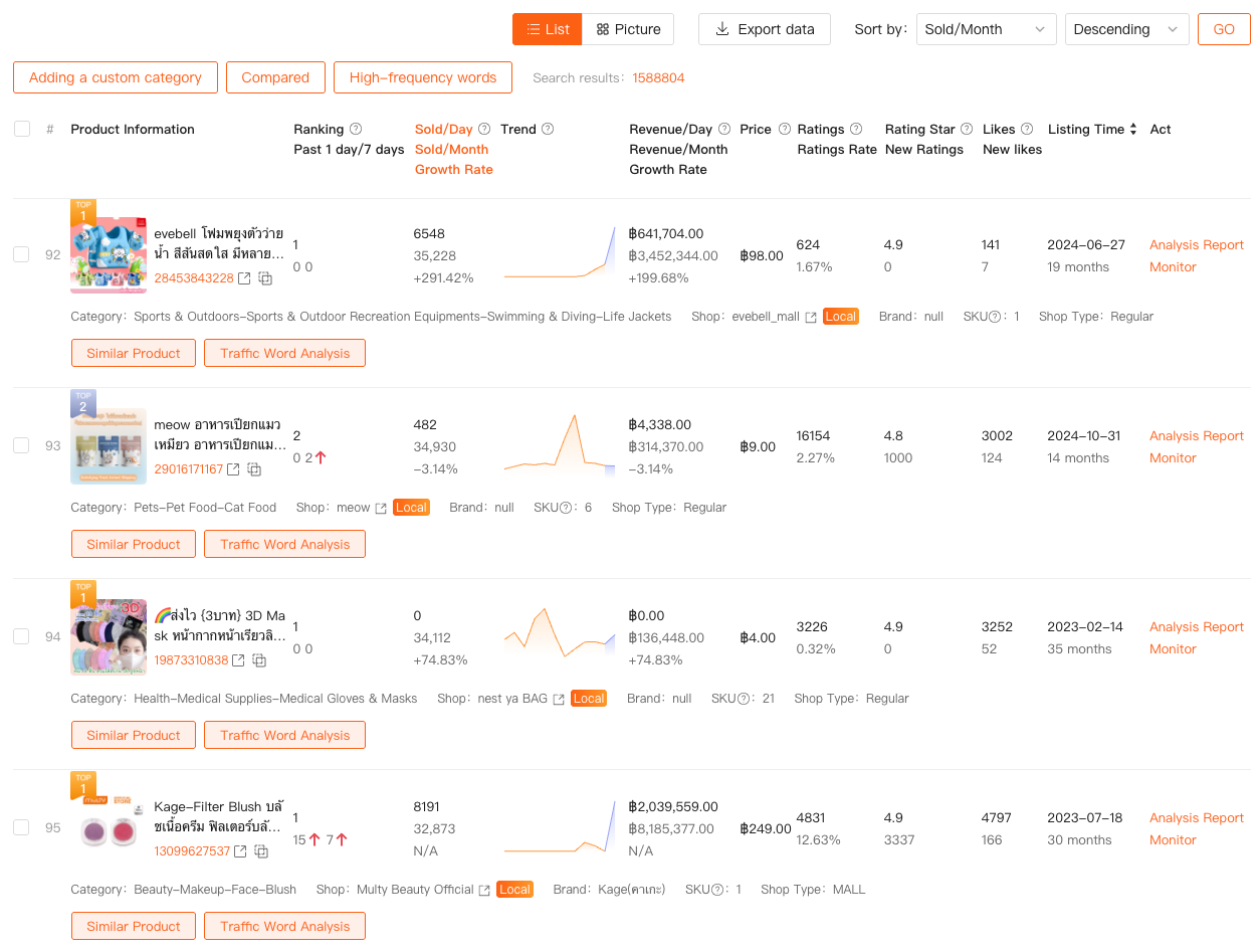 From Product Research, I usually click straight into Shopee listings—where the plugin seamlessly continues the analysis.