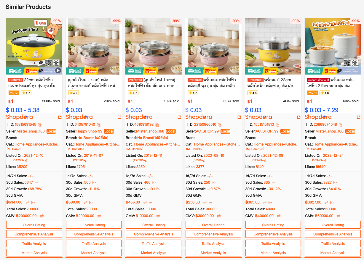 This matters because Shopee product competition is rarely obvious from the surface. A product priced at ฿1 might look unbeatable — until you realize dozens of similar listings exist, each fighting on razor-thin margins.