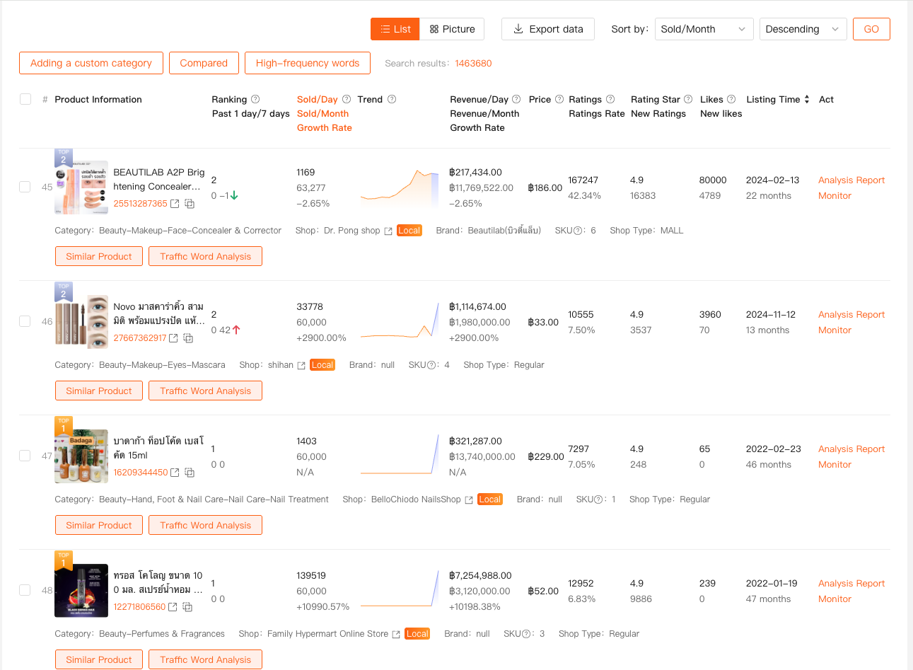 Instead of looking at individual listings, I look at market-wide product data: