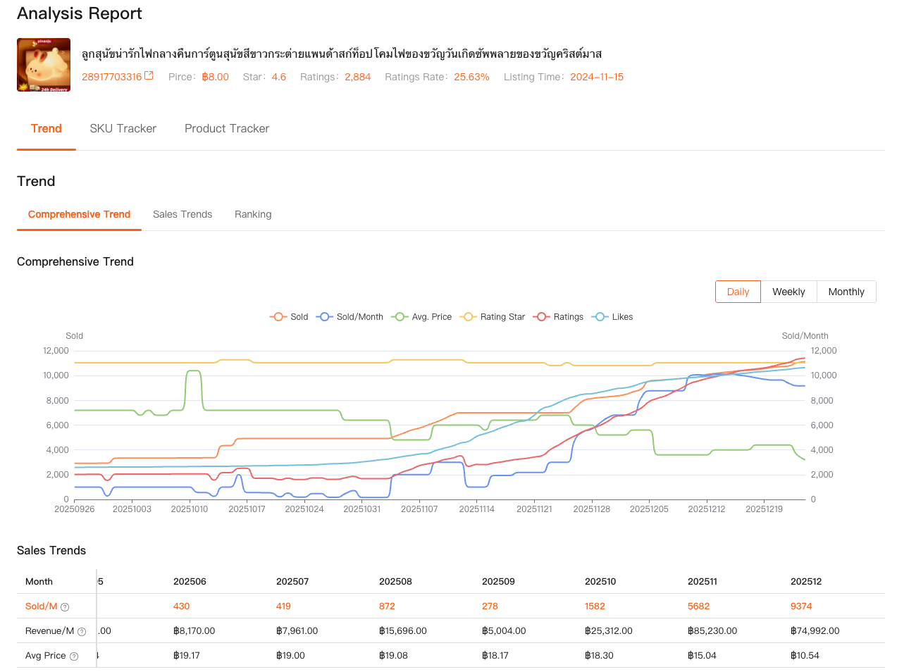 Shopdora’s Comprehensive Analysis works well here because it doesn’t isolate metrics. It connects trends, rankings, prices, and SKU behavior into a single narrative.