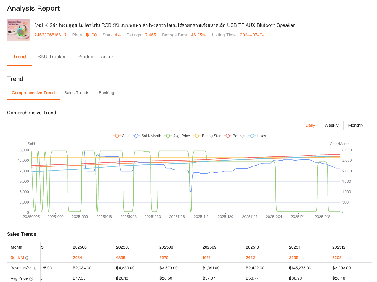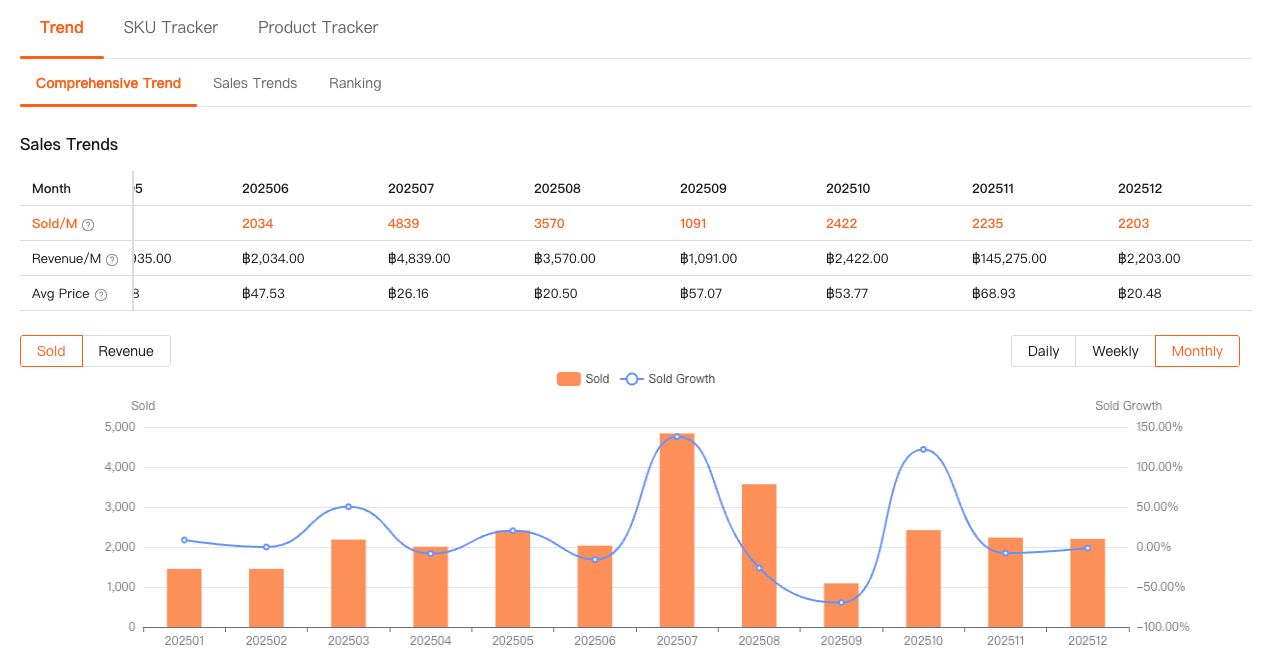 Inside Comprehensive Analysis, Shopdora combines multiple data dimensions into one view, including: