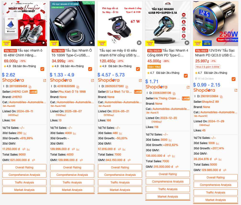 This week’s data shows continued momentum in car accessories, men’s apparel, weather-related products, and small home essentials, reflecting both year-end shopping behavior and seasonal demand in Vietnam.