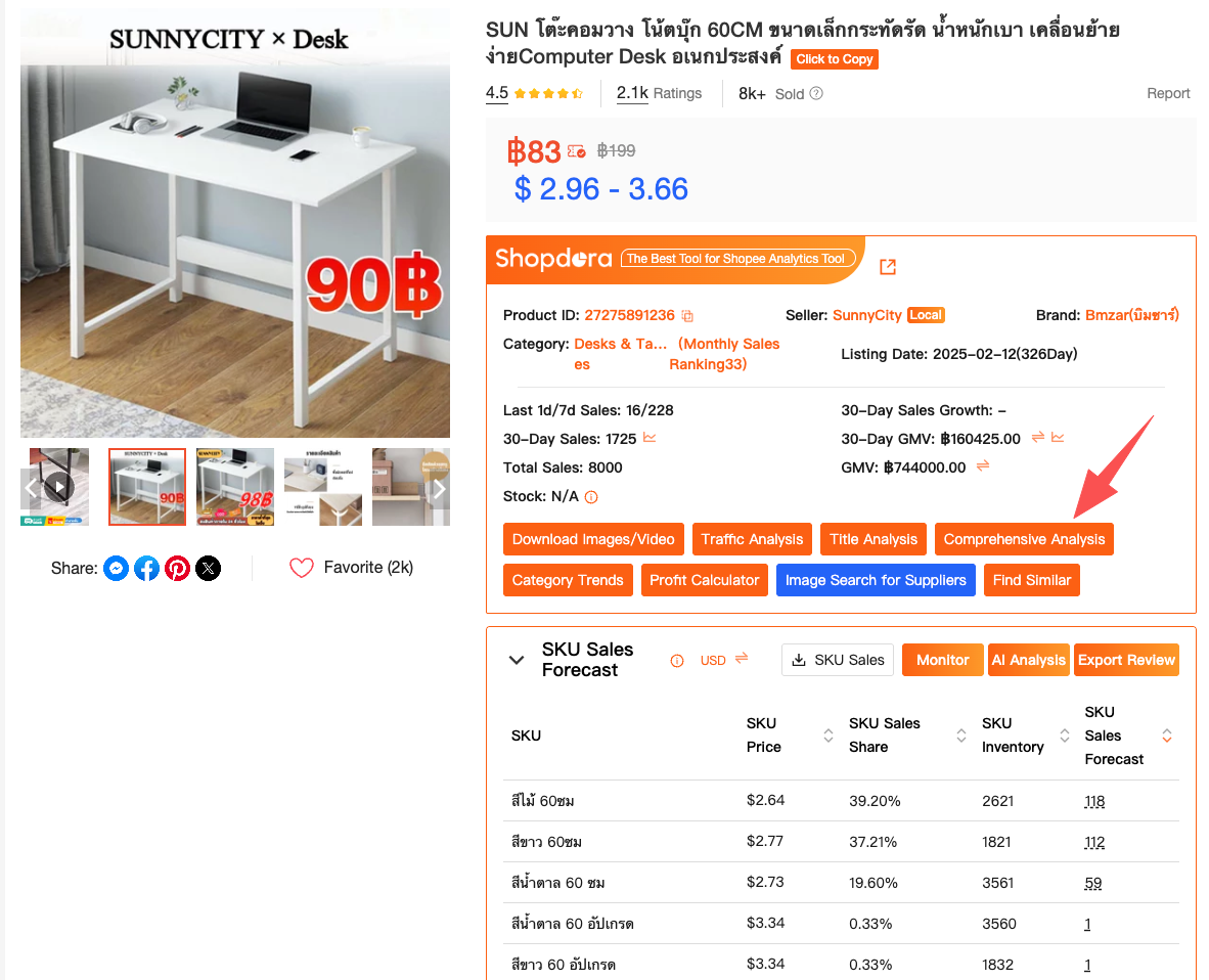 Once I understood the market, the next problem was evaluating specific products, including my own and my competitors’. This is where Shopdora’s Comprehensive Analysis became part of my daily workflow.