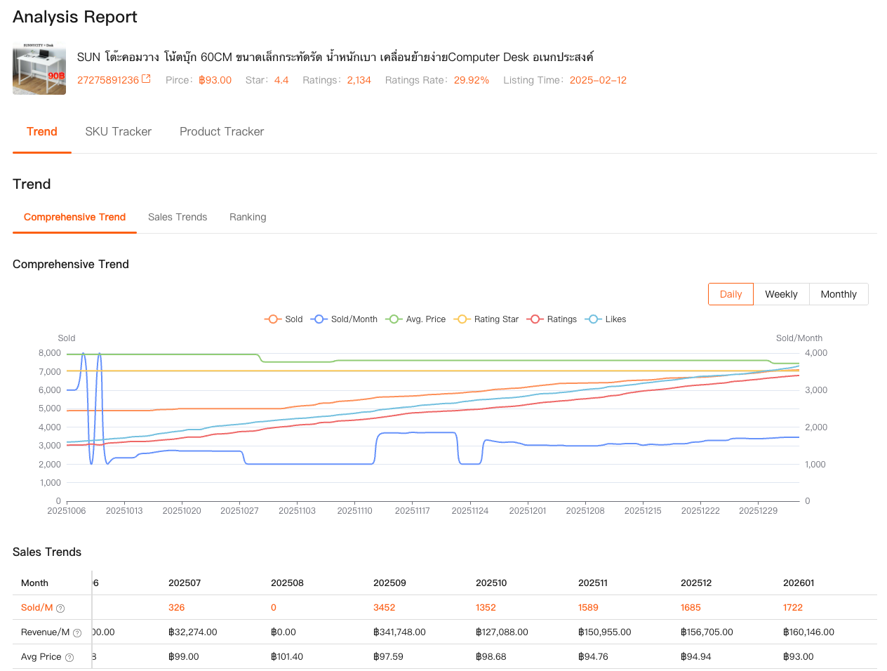 I once compared my SKU against two competing products that seemed identical at first glance. Seller Center data made them look evenly matched. But Comprehensive Analysis showed that one competitor had extremely volatile sales—huge spikes followed by sharp drops—while the other was growing steadily week by week. That told me a lot about which pricing and promotion strategy was actually sustainable.