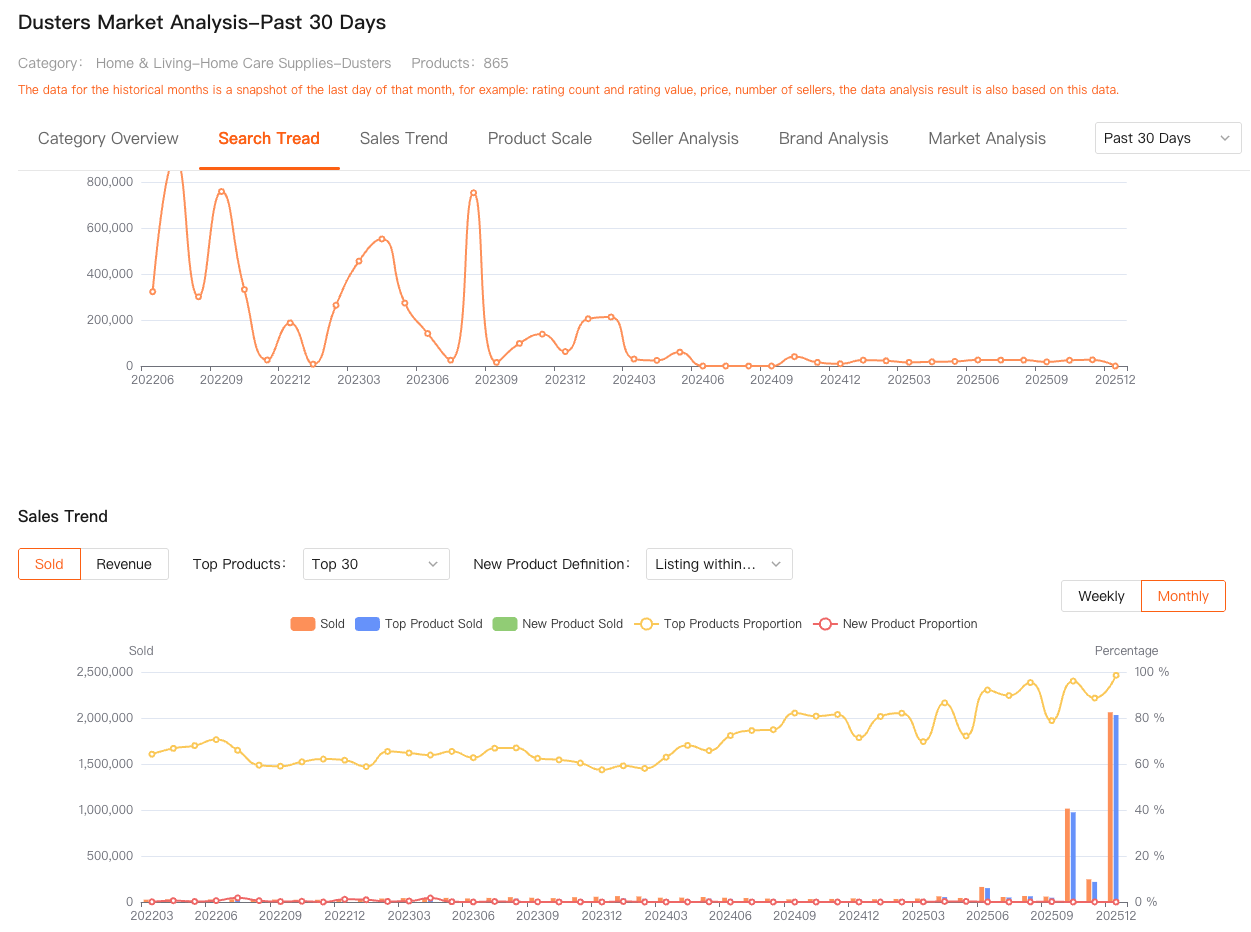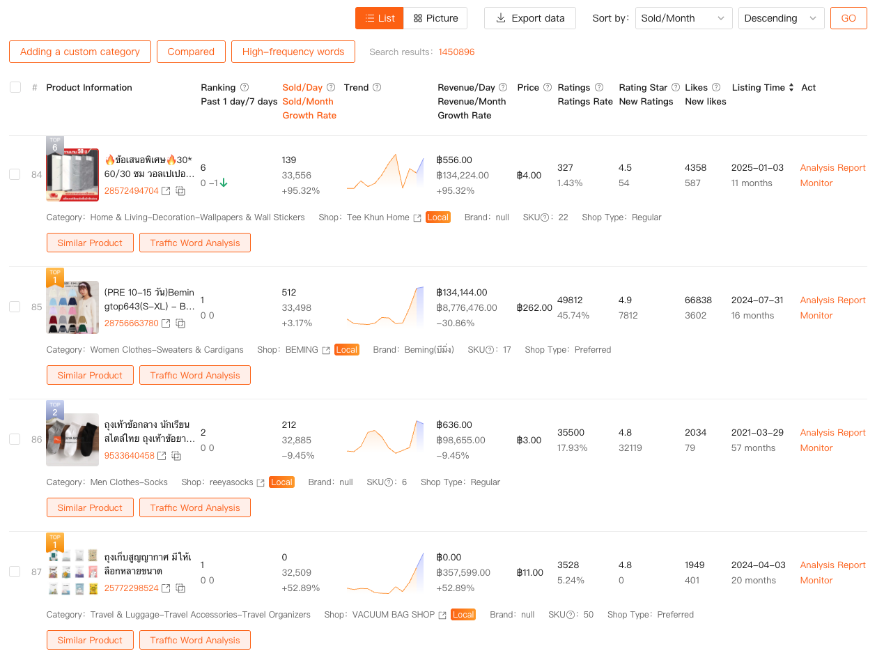 This matters because Shopee data without context can be misleading. A product doing 5,000 orders a month might look attractive — until you realize it launched two years ago and growth has flattened. Another product doing 800 orders might be far more interesting if it’s doubling month over month.