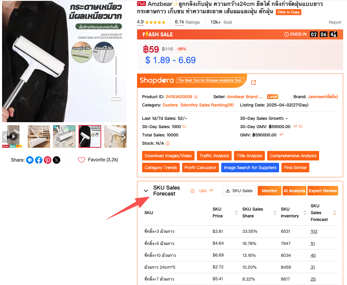 Shopdora’s SKU Insight lets you see how competitors organize their variants — pricing spread, best-selling SKUs, and how sales are distributed across options.