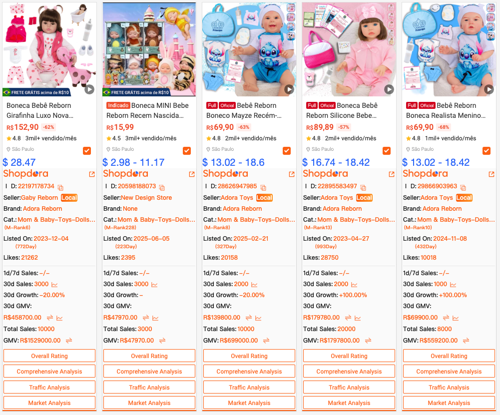 Produk seperti tumbler Stanley, jam tangan, dan boneka bayi realistis (bebê reborn) tetap menarik perhatian karena nilai emosional dan potensi sebagai hadiah.