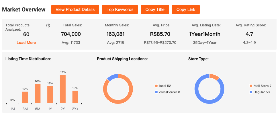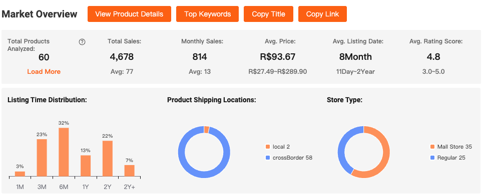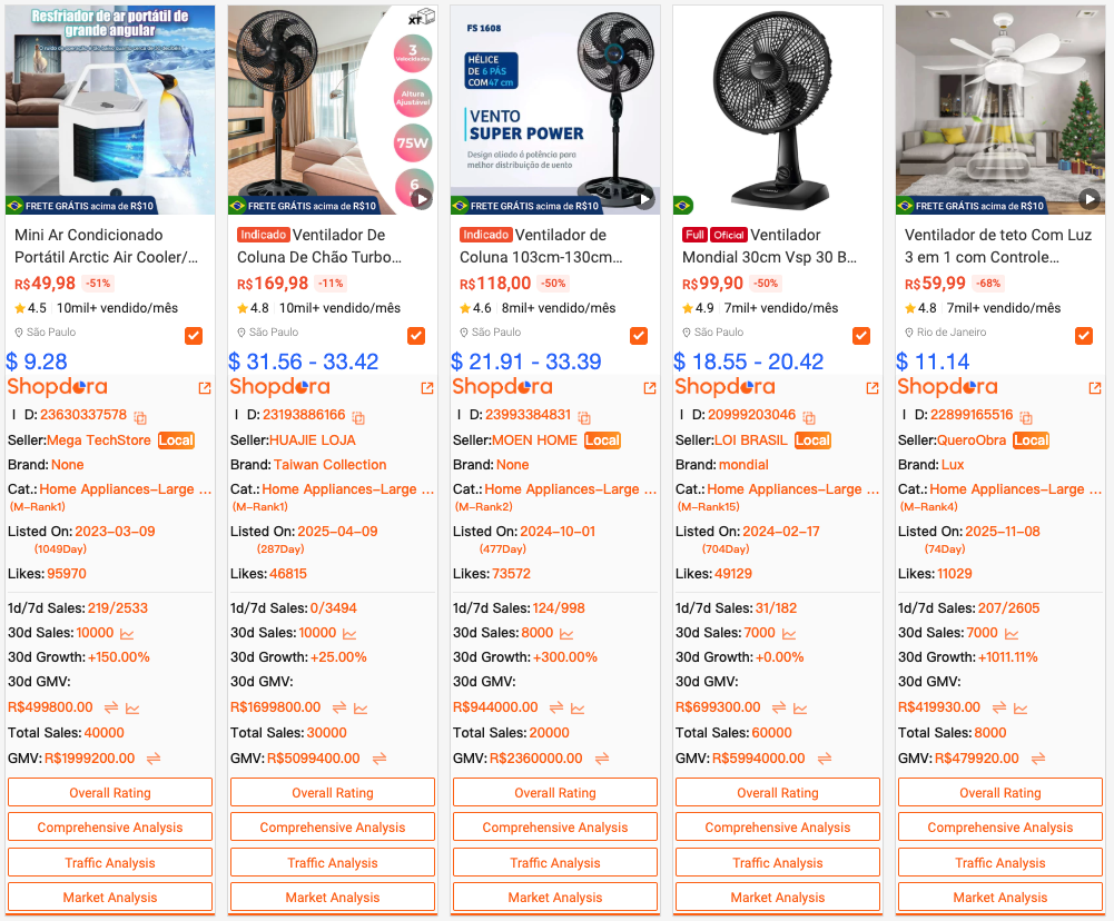Keyword seperti ventilador dan biquíni mengindikasikan bahwa produk terkait cuaca panas masih relevan di pasar Brasil.