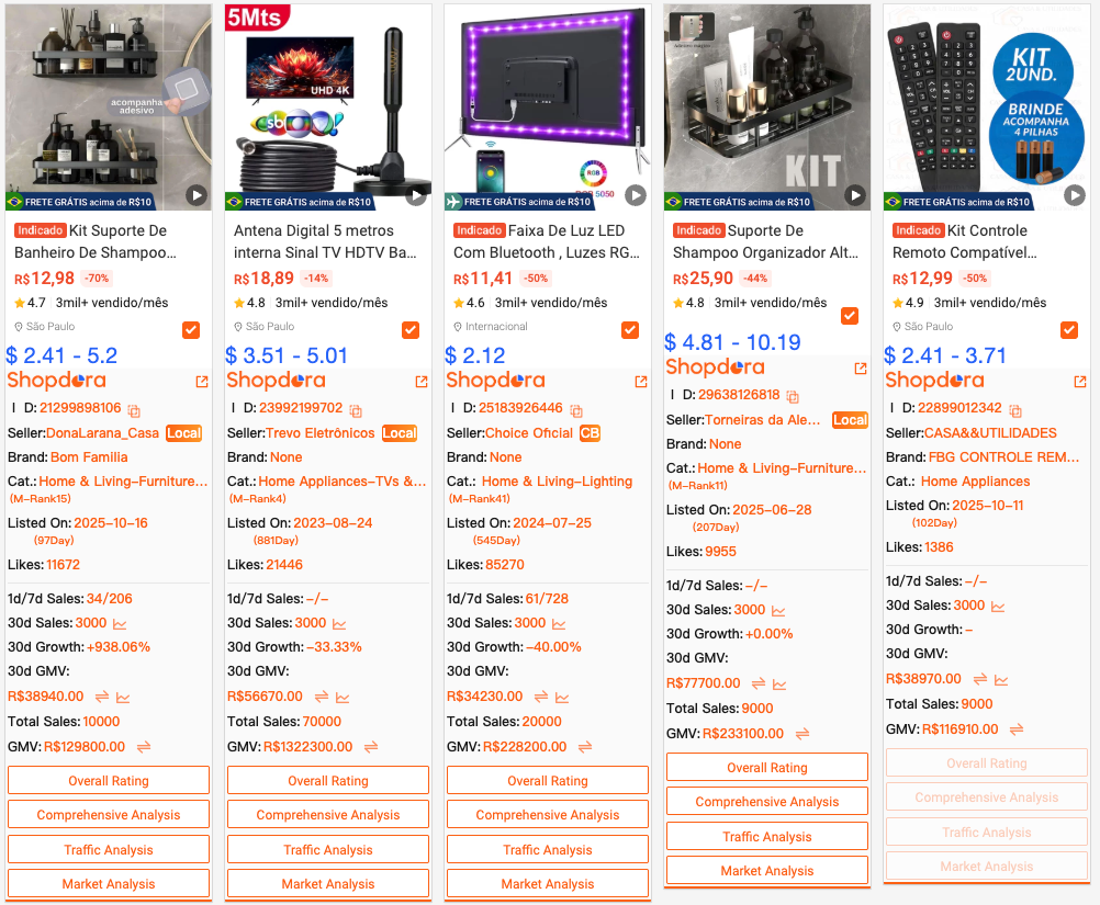 Keyword cozinha dan tv menunjukkan bahwa produk rumah tangga tetap memiliki volume pencarian stabil meskipun bukan musim promo besar.