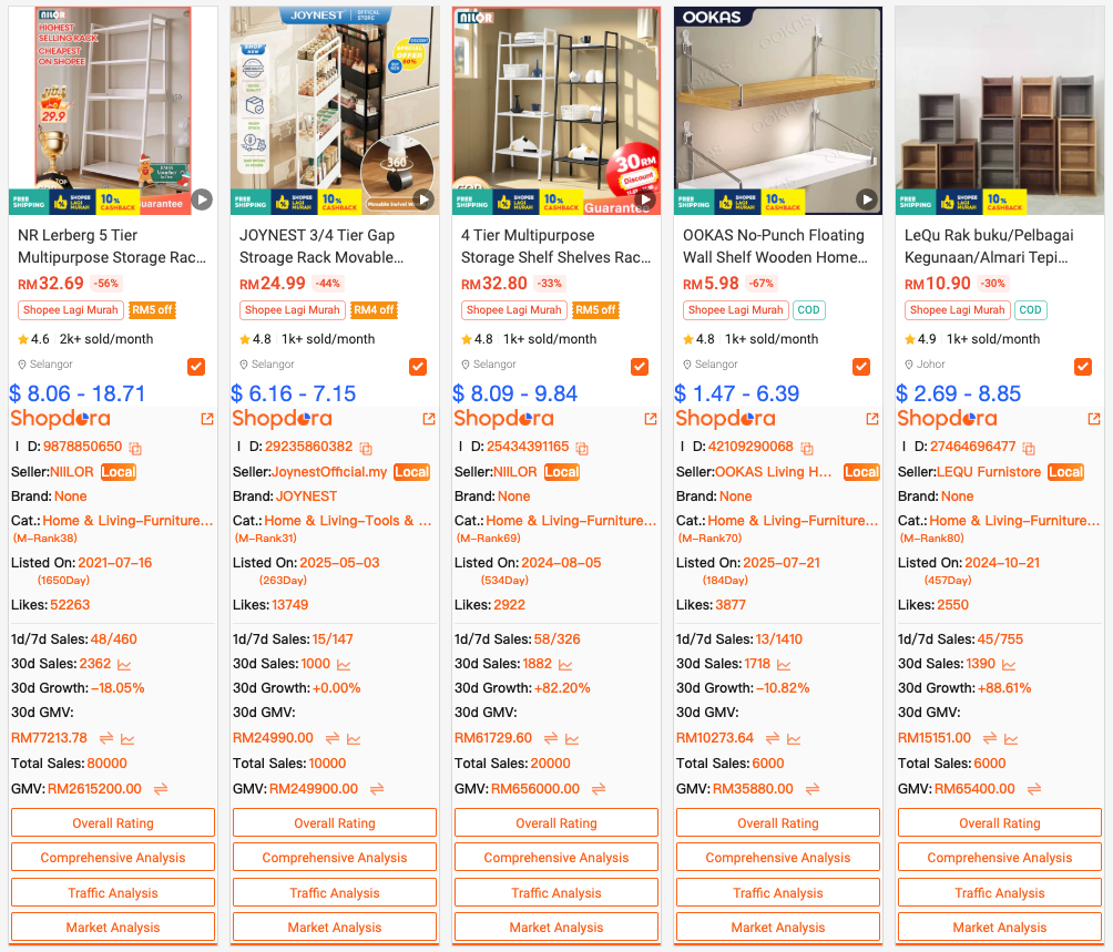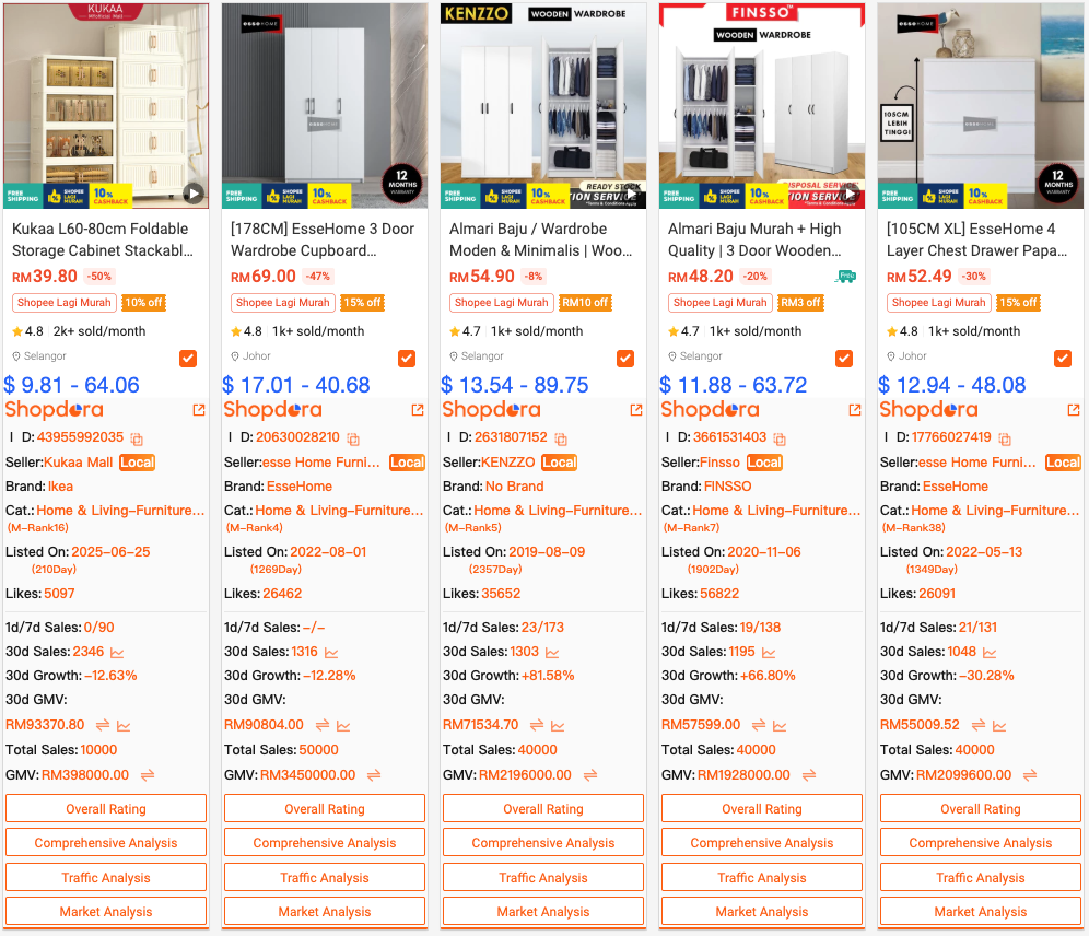 Item seperti almari baju dan rak buku menunjukkan permintaan konsisten untuk produk rumah tangga.