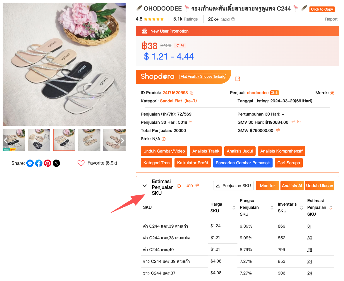 Fitur ini bisa diakses dari halaman detail produk di Shopdora. Di sana, saya bisa melihat: