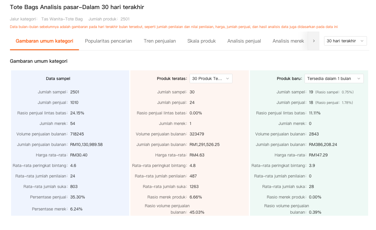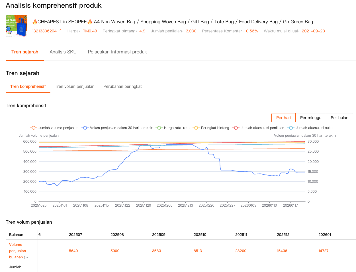 Di sinilah saya mengandalkan fitur Analisis Komprehensif dan Analisis Market Shopdora. Sebelum saya mempelajari satu gambar yang diunduh pun, saya mengecek apakah produk atau kategori itu sedang tren naik atau mendingin. Saya melihat tren penjualan, perubahan harga, dan pergerakan peringkat di seluruh pasar.