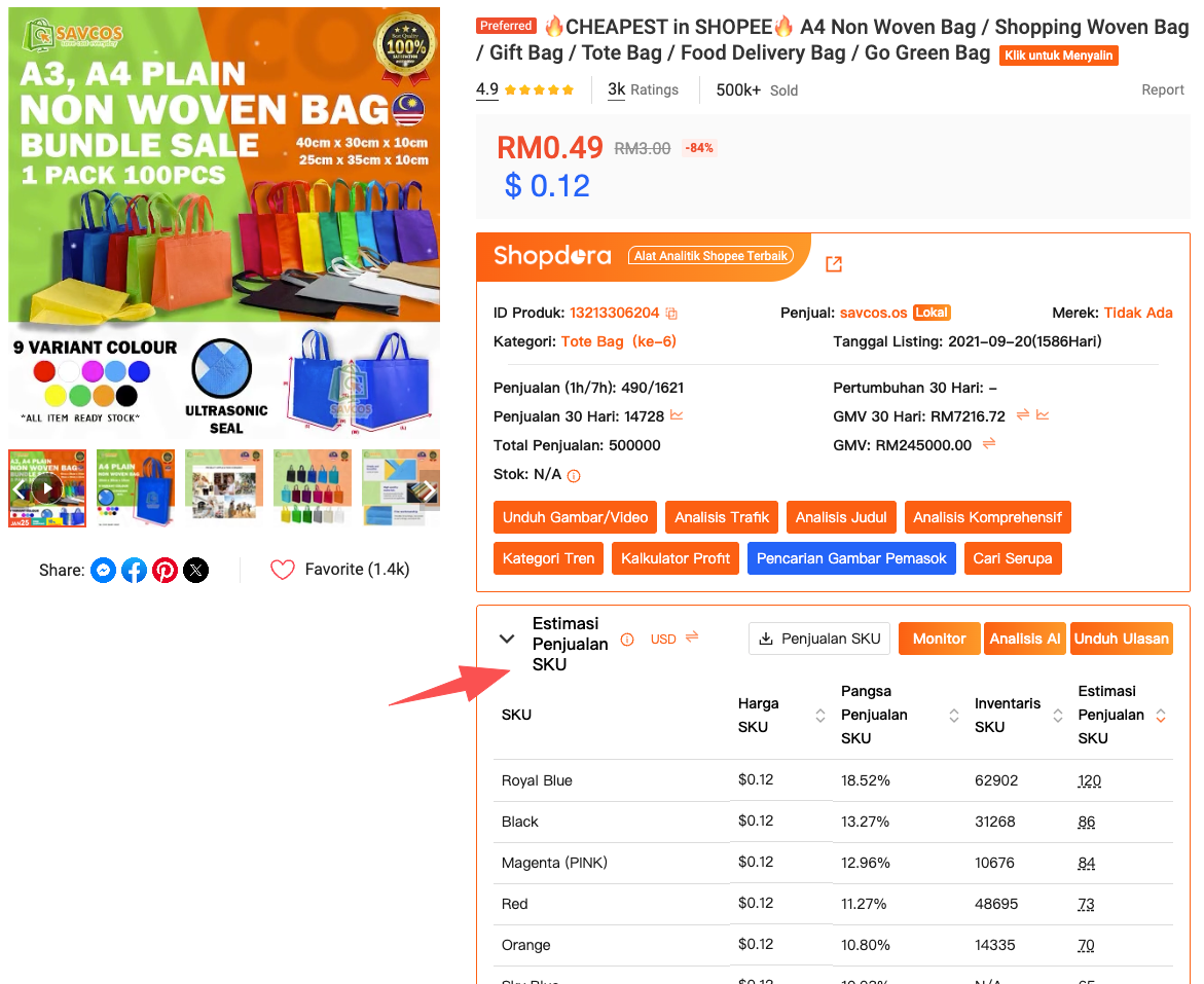 Salah satu penggunaan paling praktis dari Shopee image downloader adalah riset SKU. Banyak listing terlihat kuat secara keseluruhan, tetapi hanya satu atau dua varian yang benar-benar mendorong sebagian besar penjualan. Shopee tidak menunjukkan rincian itu untuk pesaing.