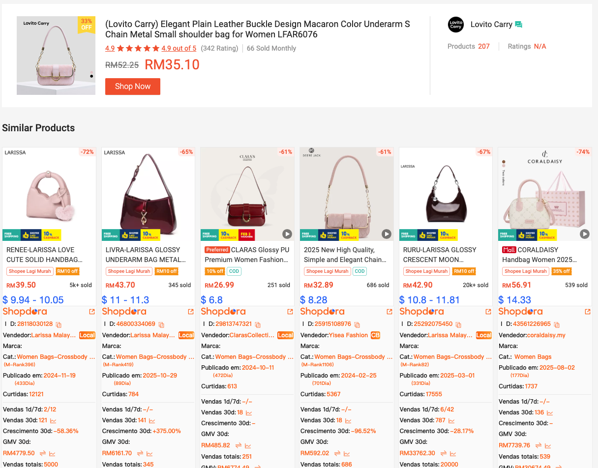 Usando o mesmo plugin, você pode pegar uma imagem de produto e buscar instantaneamente produtos visualmente semelhantes em toda a Shopee. Sem palavras-chave. Sem suposições.